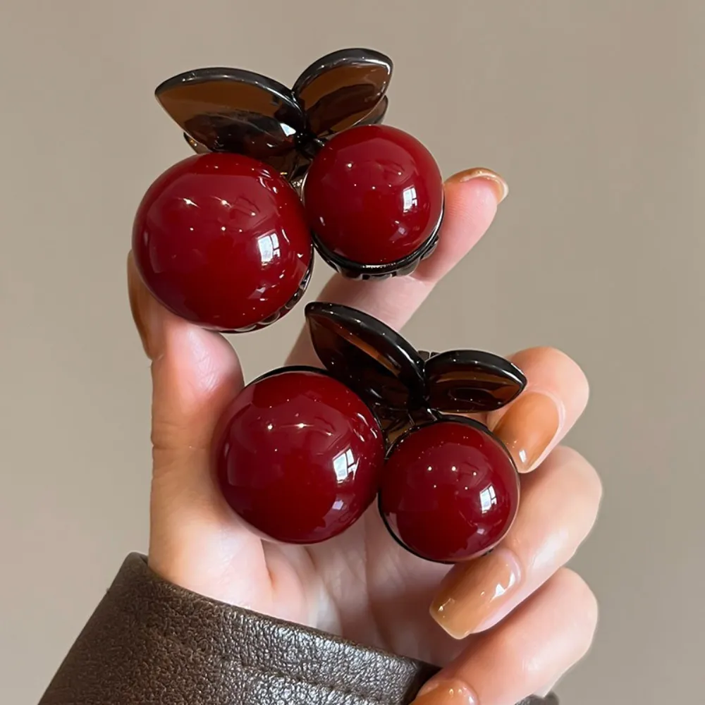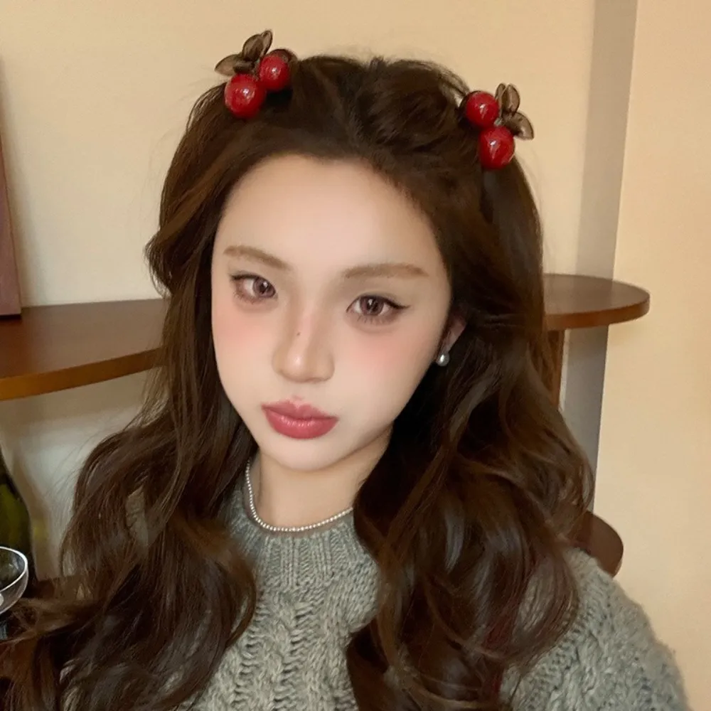Braçadeira Ankela em forma de cereja Presilha lateral Acessório de cabelo com meio zíper na nuca