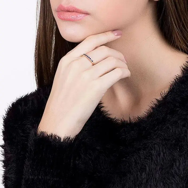 ANEL MEIA ALIANÇA COM 9 ZIRCÔNIAS DE 2MM.