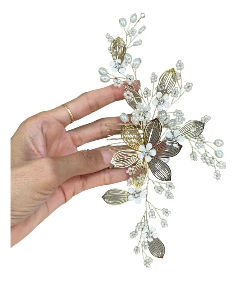 Arranjo Enfeite Cabelo Laminado Pente Noiva Casamento Gold
