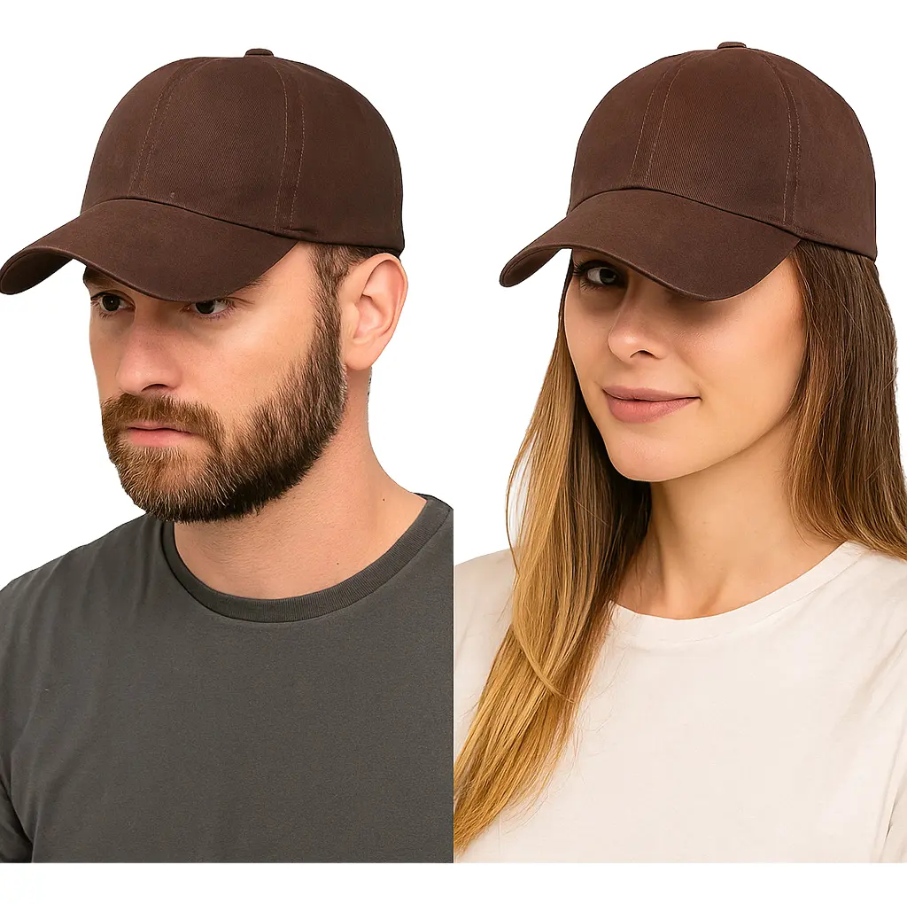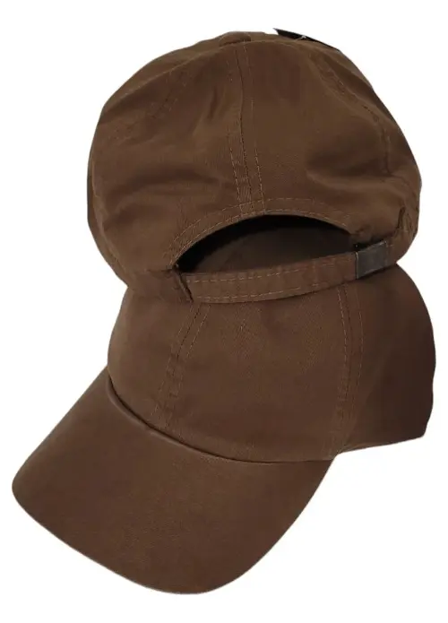 – Boné de sarja, marrom, liso.