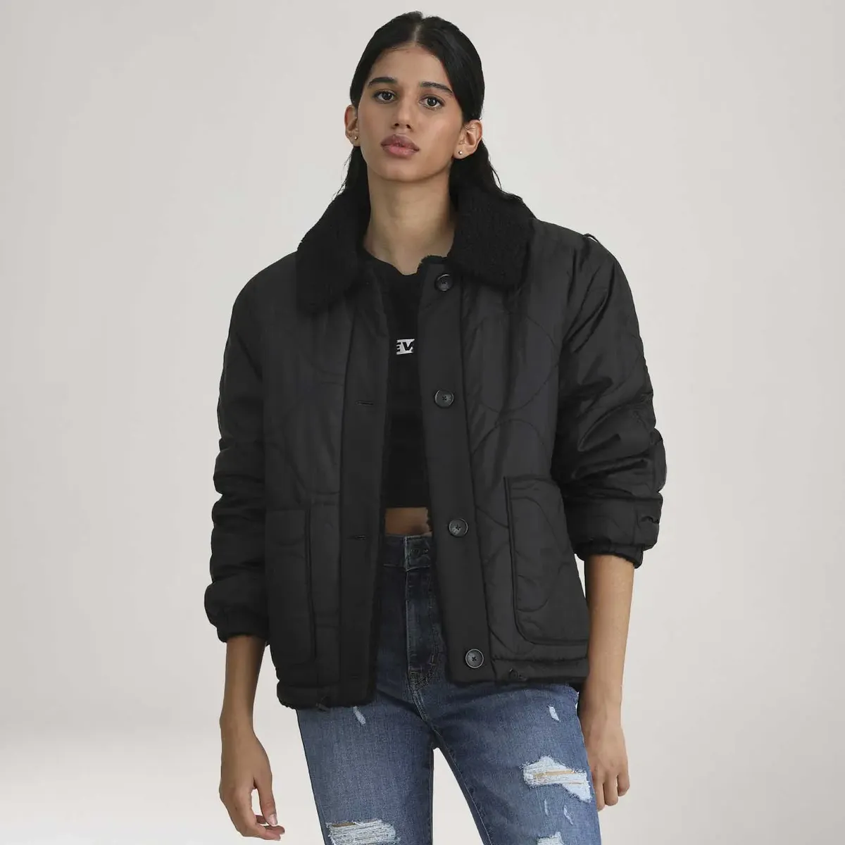 Categoria: Jaquetas e CasacosCor / Lavagem: PretoComposição: 100% Poliéster