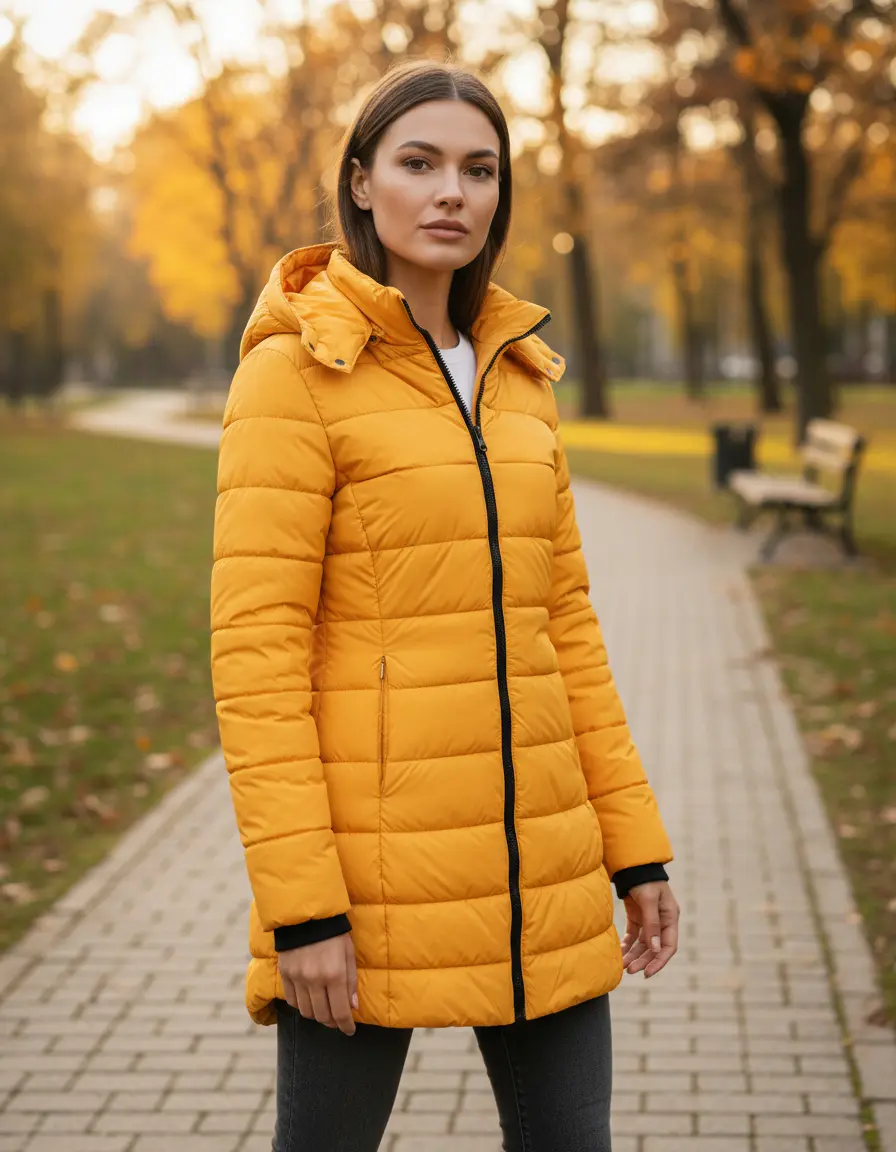 Casacos Femininos De Comprimento Médio E Cor Quente, Jaqueta