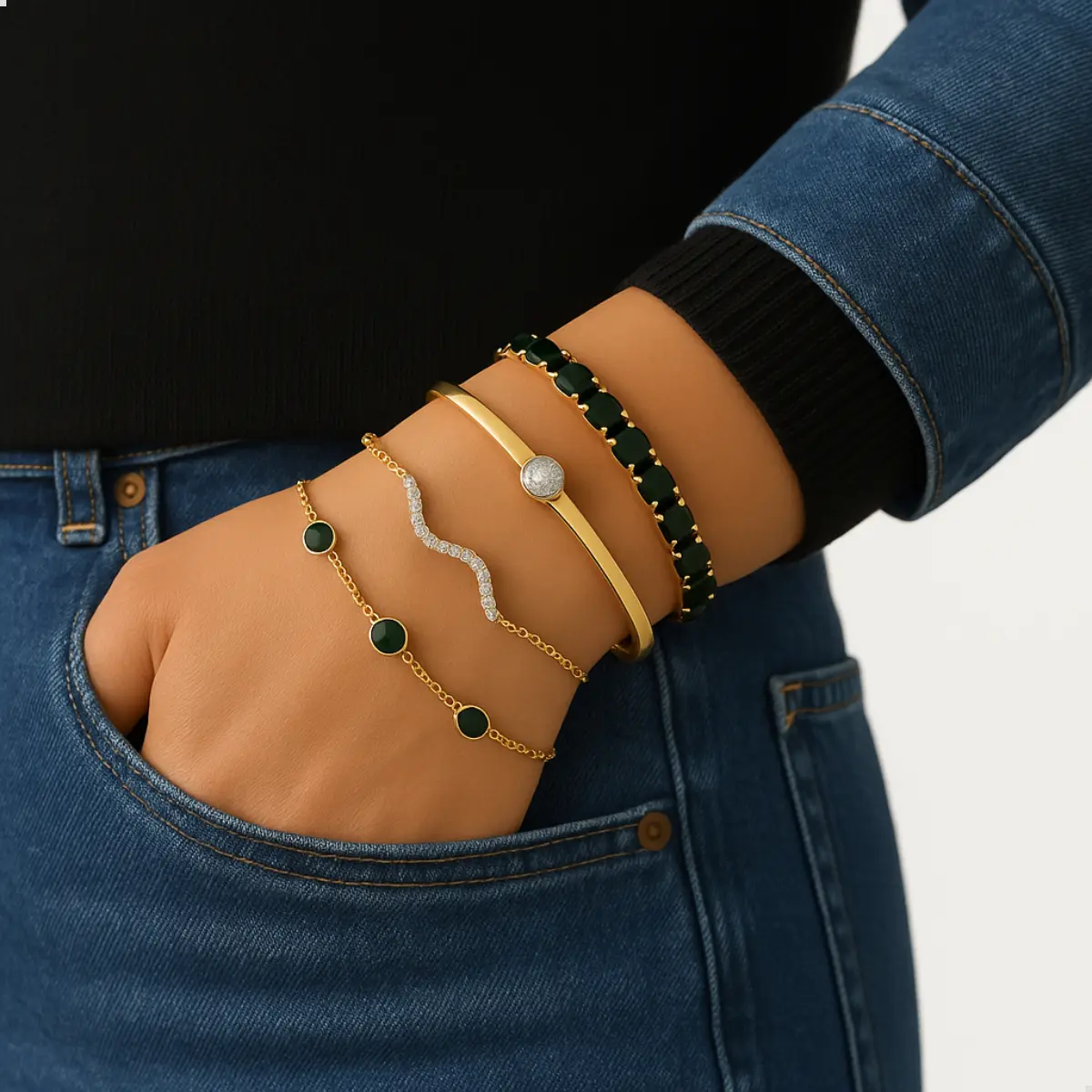 Transforme o seu visual com nosso conjunto exclusivo de 4 pulseiras, criado especialmente para mulheres que valorizam elegância, estilo e sofisticação em cada detalhe. Seja para um look casual ou para ocasiões especiais, essas pulseiras são o acessório perfeito para complementar a sua personalidade única.