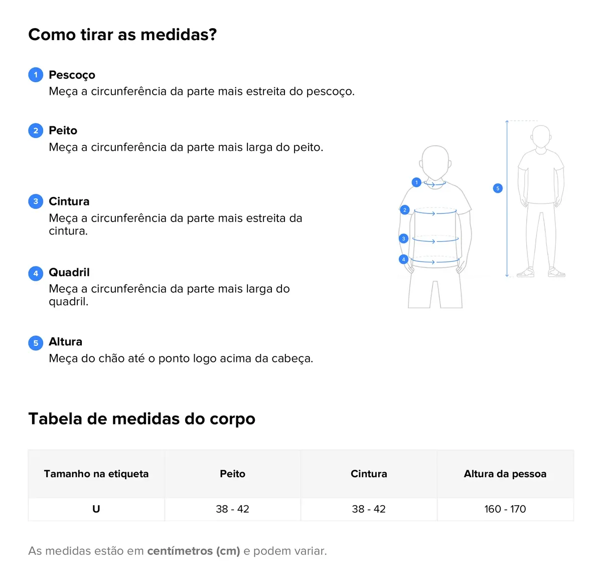 – Cintura: 36cm (elástico – sem esticar)