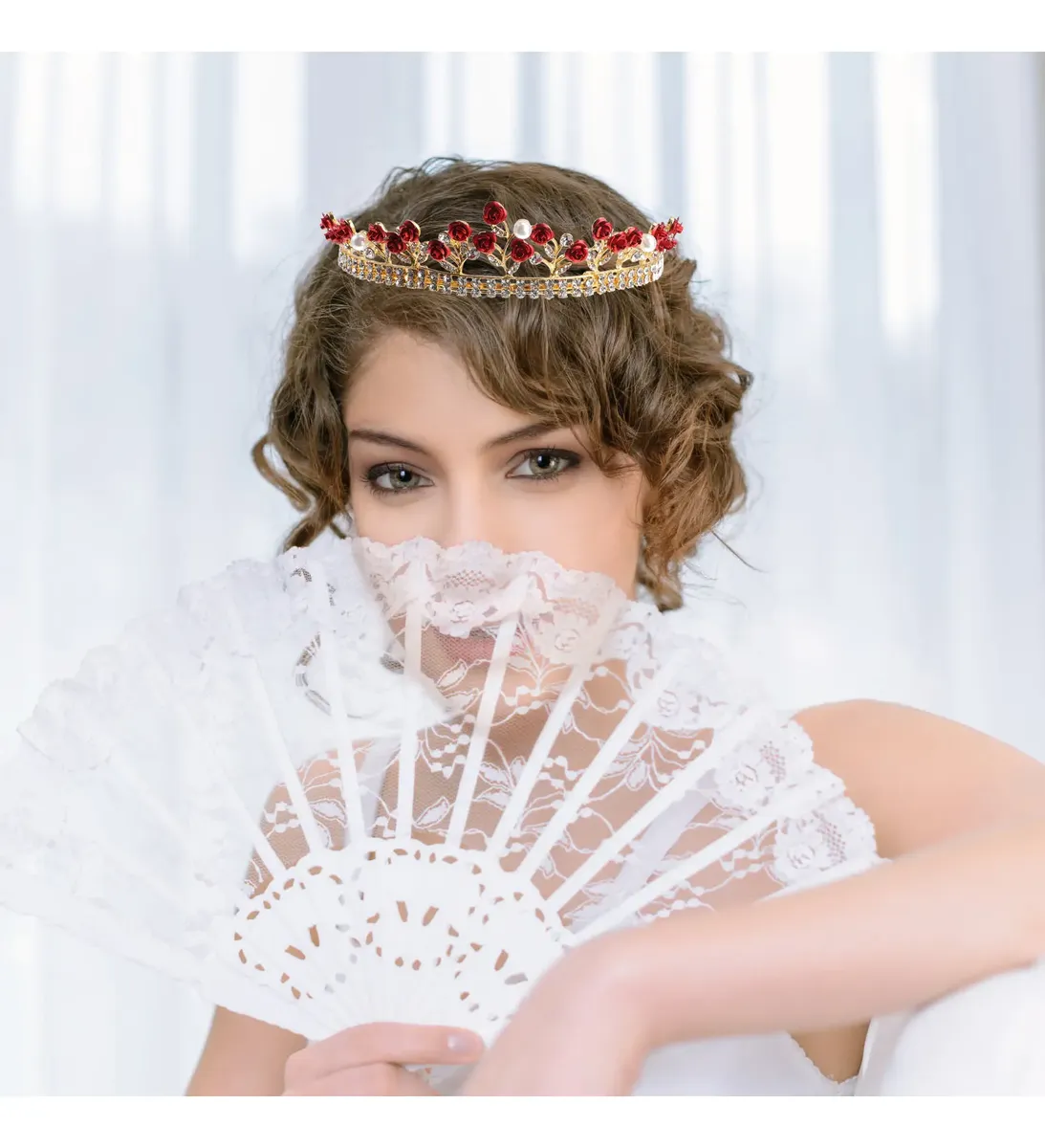 Coroa Artesanal Com Rosas E Strass Para Noiva