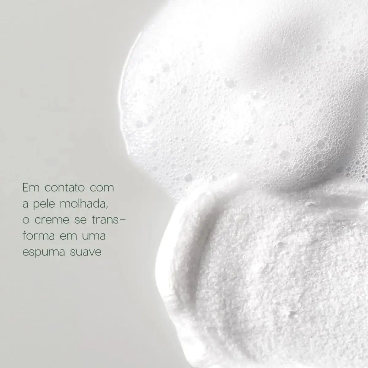 Textura cremosa que gera espuma suave, transmitindo frescor e conforto.
