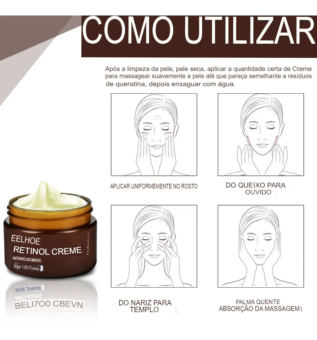 Creme Puro Retinol 2,5% Anti Idade Rugas E Corpo Momento de aplicação Noite Tipo de pele Todo tipo de pele