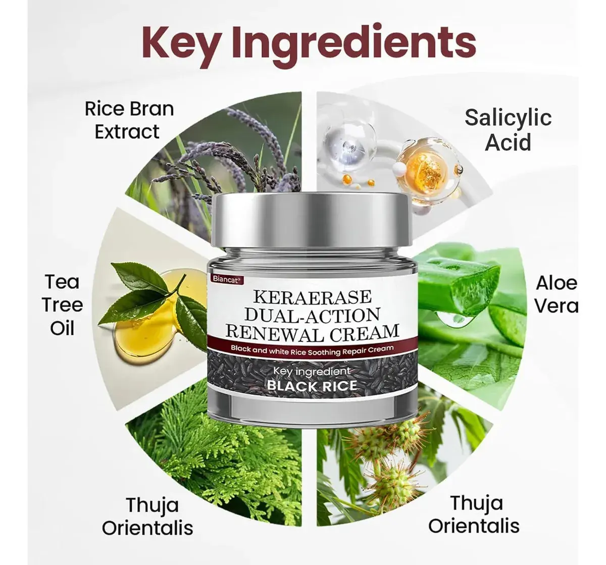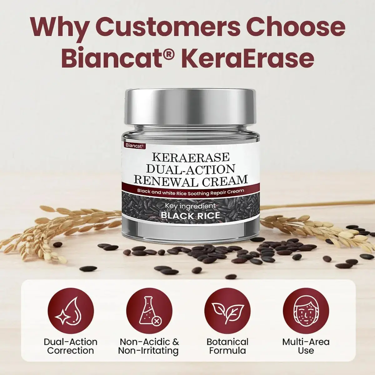 renovação de dupla ação Biancat KeraRase, creme profissional para tratamento da pele, creme reparador calmante de arroz preto e branco, sérum corporal natural adequado para todos os tipos de pele (1 pacote).