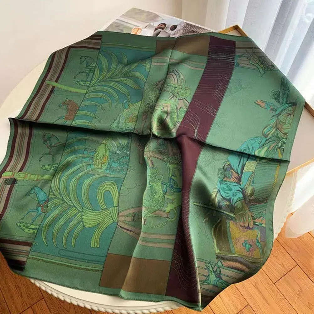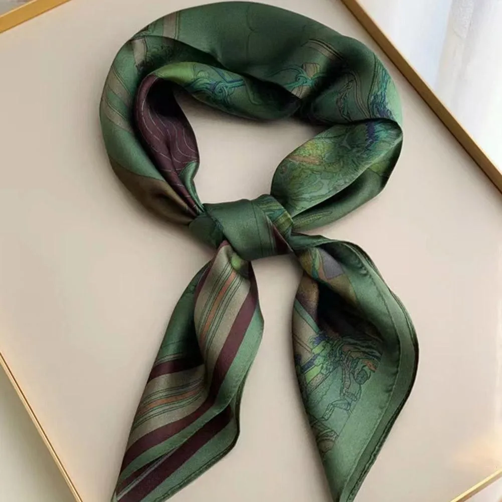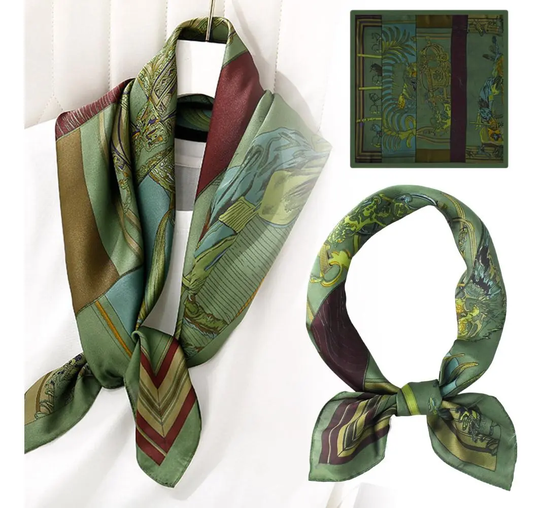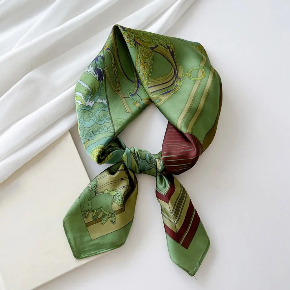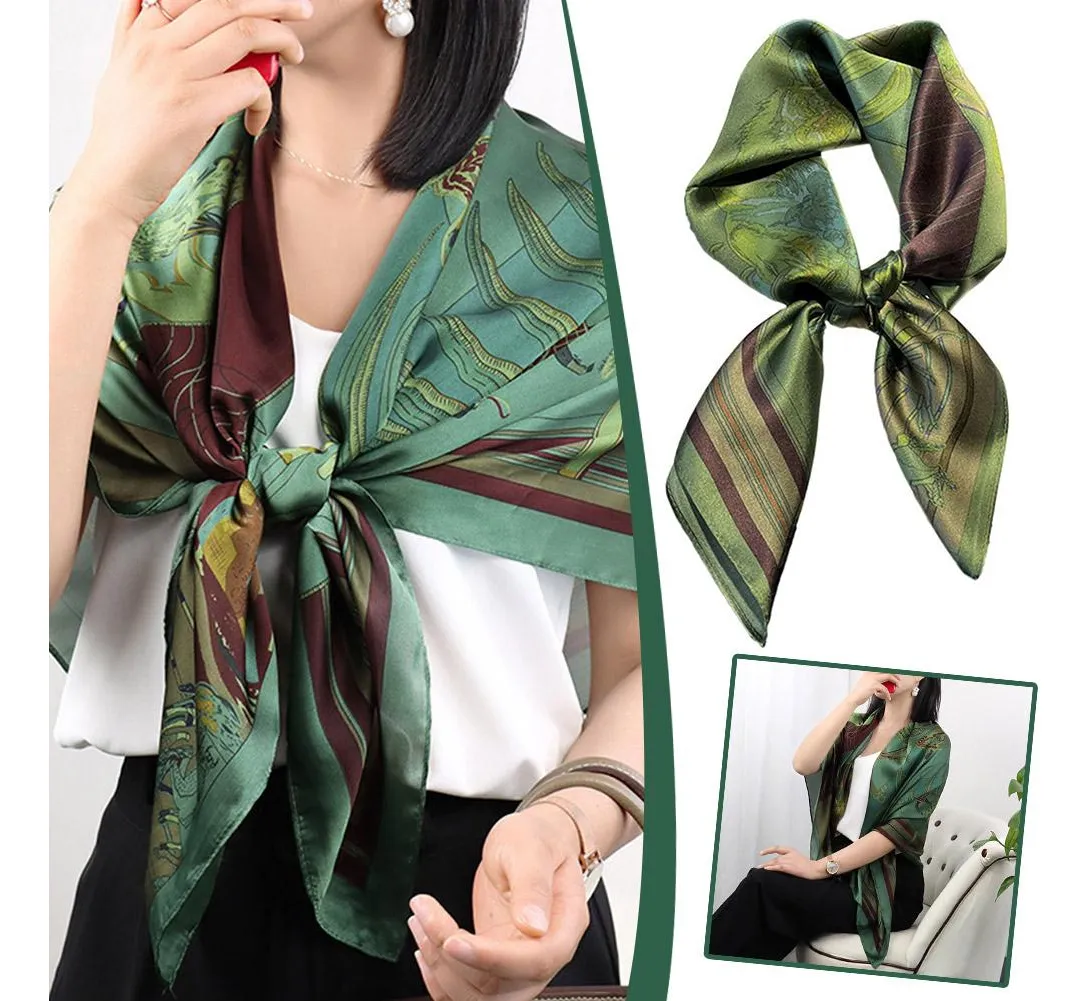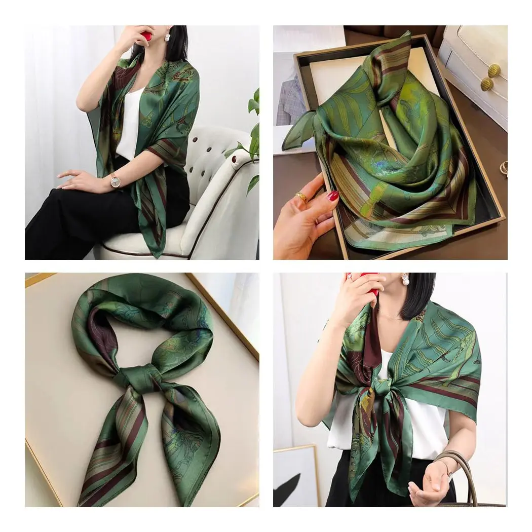 O requintado cachecol quadrado o design combina moda e retrô e é um acessório ideal para criar looks personalizados no local de trabalho.