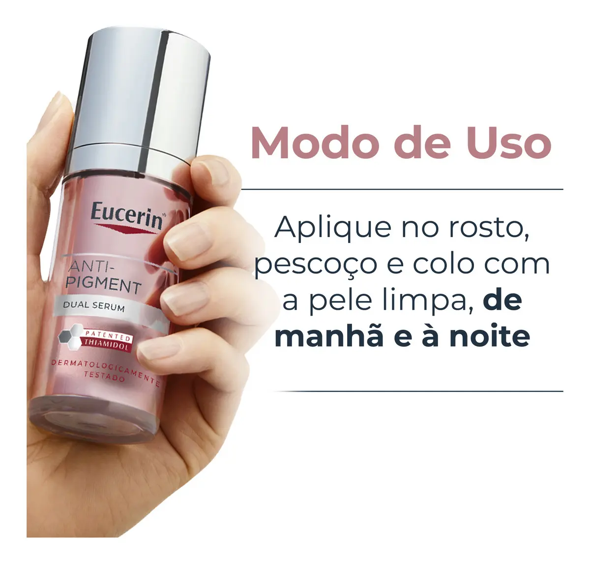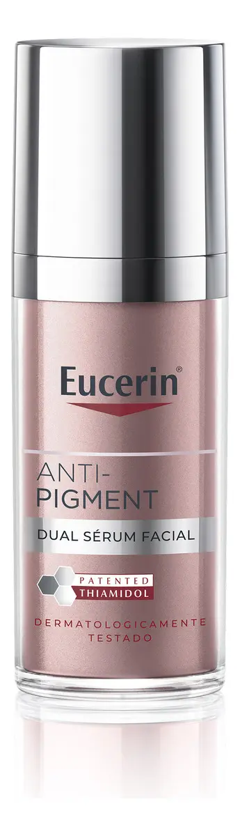 Eucerin Anti-Pigment Dual Sérum Facial é um produto clareador ideal para a redução e prevenção de manchas, desenvolvido com Thiamidol, um ativo reconhecido pelos dermatologistas como o mais eficaz e o único comprovado por atuar na causa raiz das manchas. Sua fórmula também contém ácido hialurônico facial, que ajuda a preencher rugas e linhas finas.