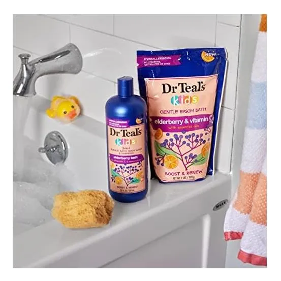 Dr Teal’s Kids Elderberry & Vitamin C Bath 3-in-1 é especialmente formulado para ser seguro e hipoalergênico com limpadores suaves que fazem bolhas incríveis para um banho de espuma com cheiro excelente. Com sabugueiro, vitamina C e óleos essenciais naturais para ajudar seus filhos a relaxar após o dia, este 3 em 1 também funciona muito bem como xampu e sabonete líquido.