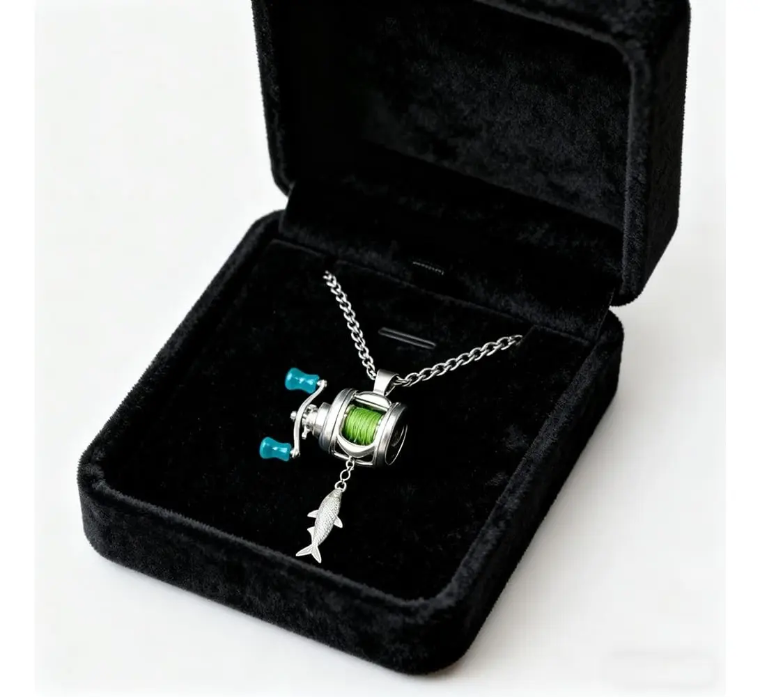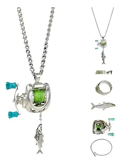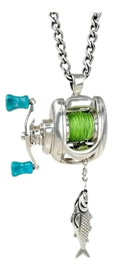 Joias versáteis e acessórios de transporte diário: mais do que apenas um colar, o colar em forma de carretel de pesca foi projetado com um prático chaveiro, permitindo que você o carregue com estilo ou em sua mochila ou chaves, demonstrando sua paixão pela pesca todos os dias.