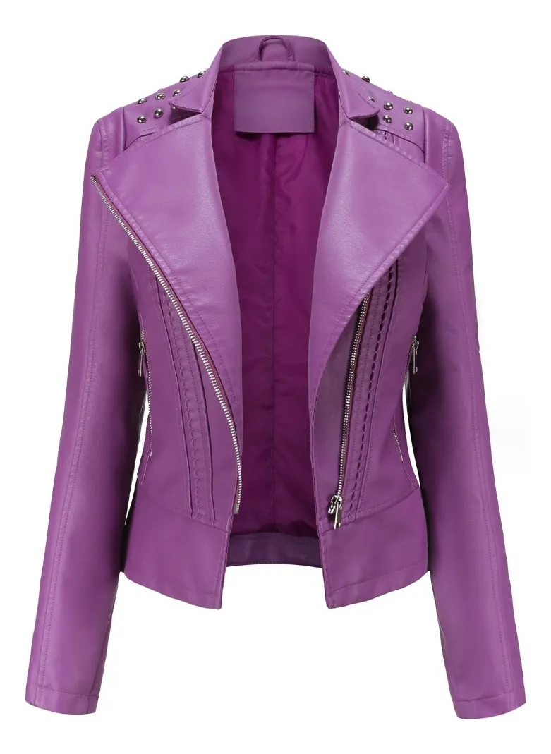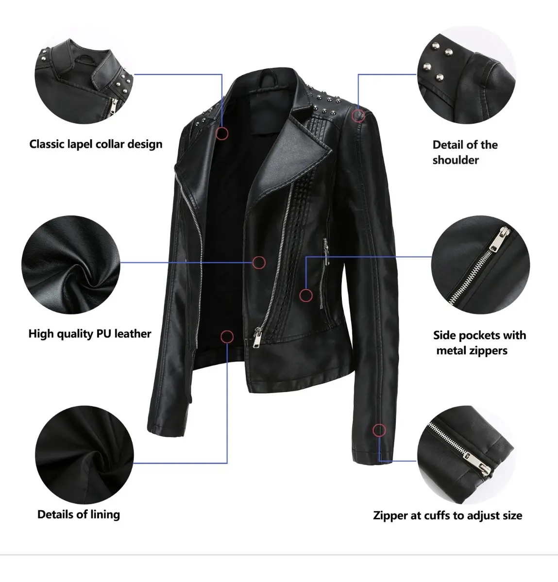 Jaqueta Feminina De Couro À Prova De Vento C Jackets Para C