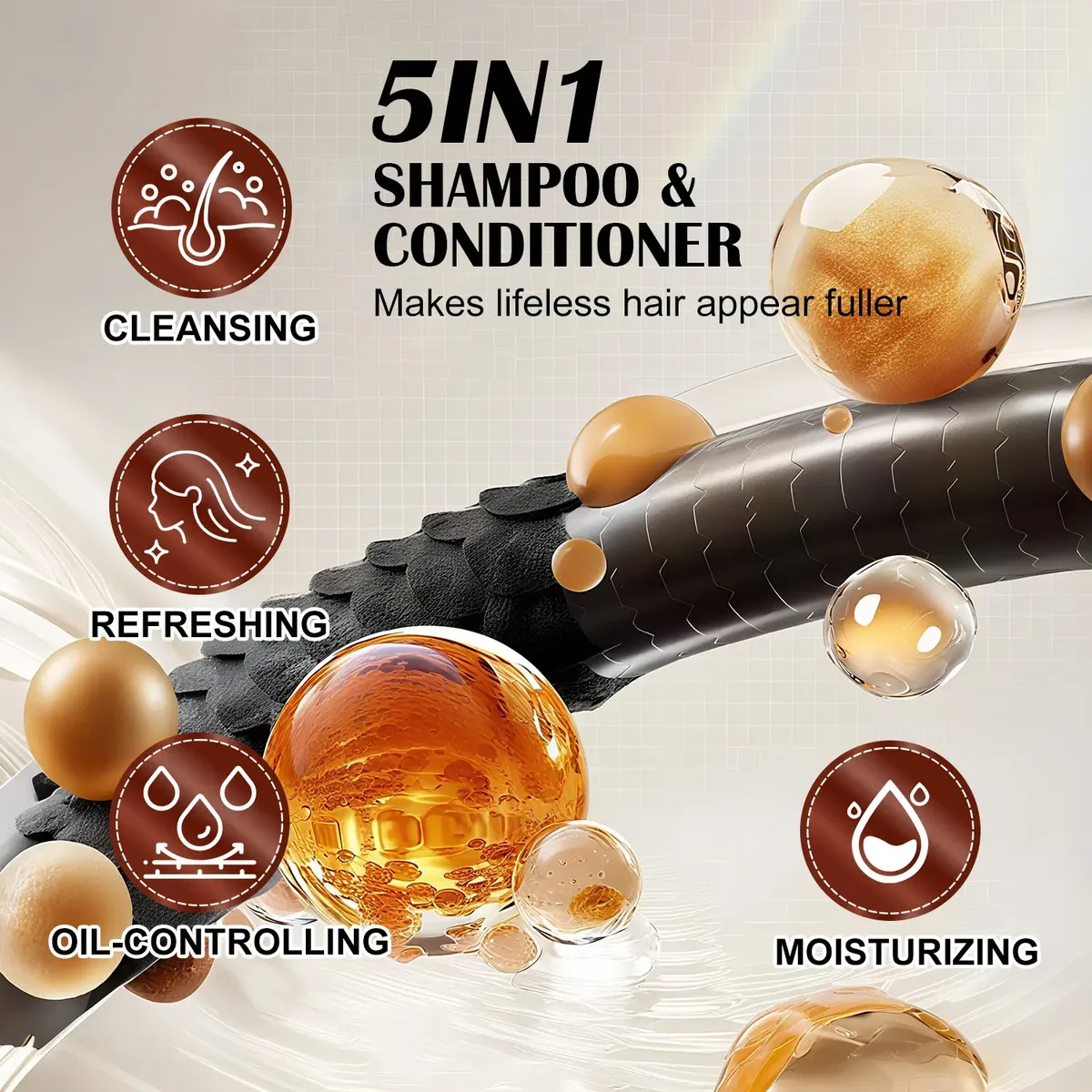 Limpeza profunda e controle de oleosidade: limpa suavemente o couro cabeludo e os fios, regula a secreção de óleo e mantém as raízes frescas.