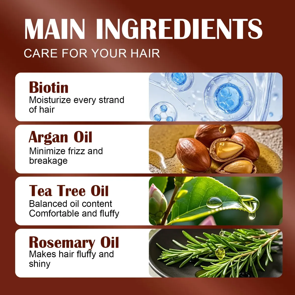 Nutrição com múltiplas plantas: sinergia de óleo de argan e biotina para hidratação profunda e combate à secura e ao frizz.