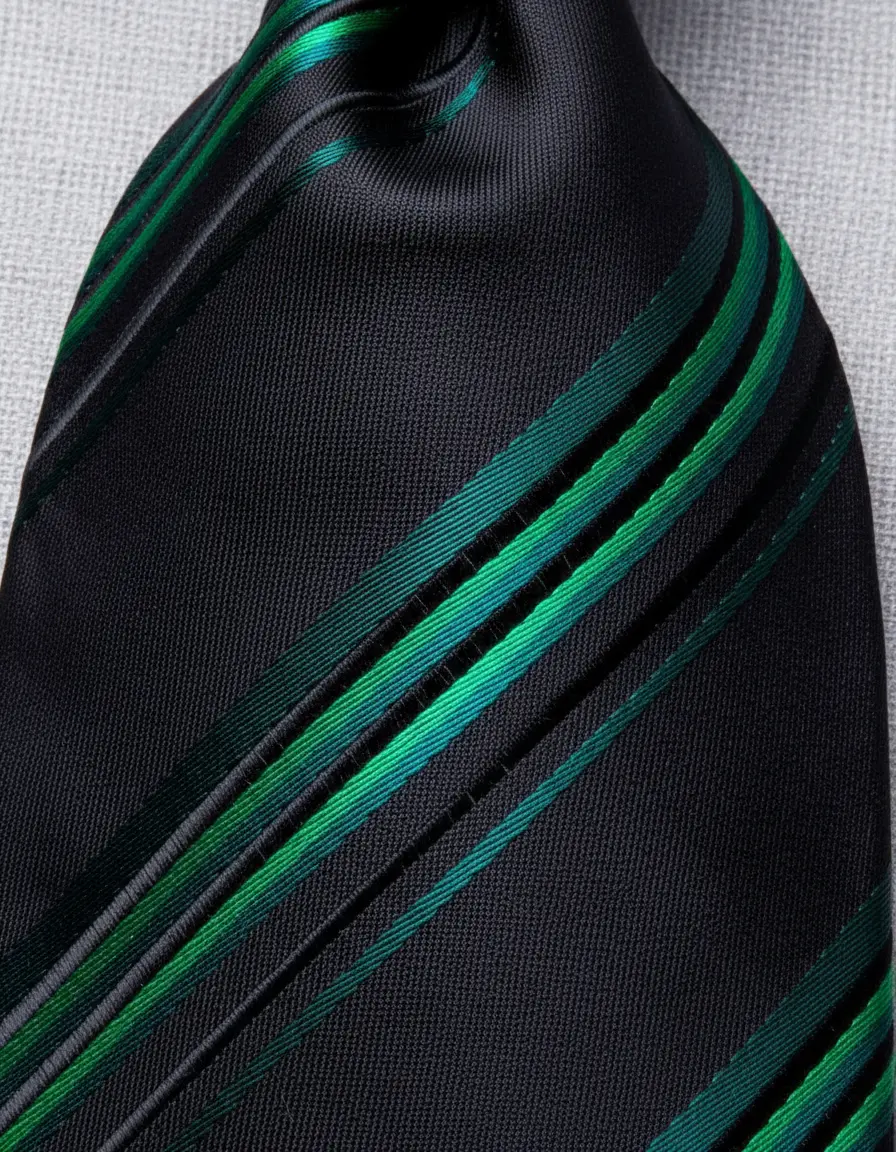 Apresentamos a gravata verde de seda italiana da marca Hi – Tie, um acessório que combina elegância e sofisticação. Com um design clássico e listras em preto, esta gravata é ideal para ocasiões formais, como casamentos e eventos executivos. Sua composição em 100% seda italiana garante um toque suave e um caimento perfeito, elevando qualquer traje masculino.