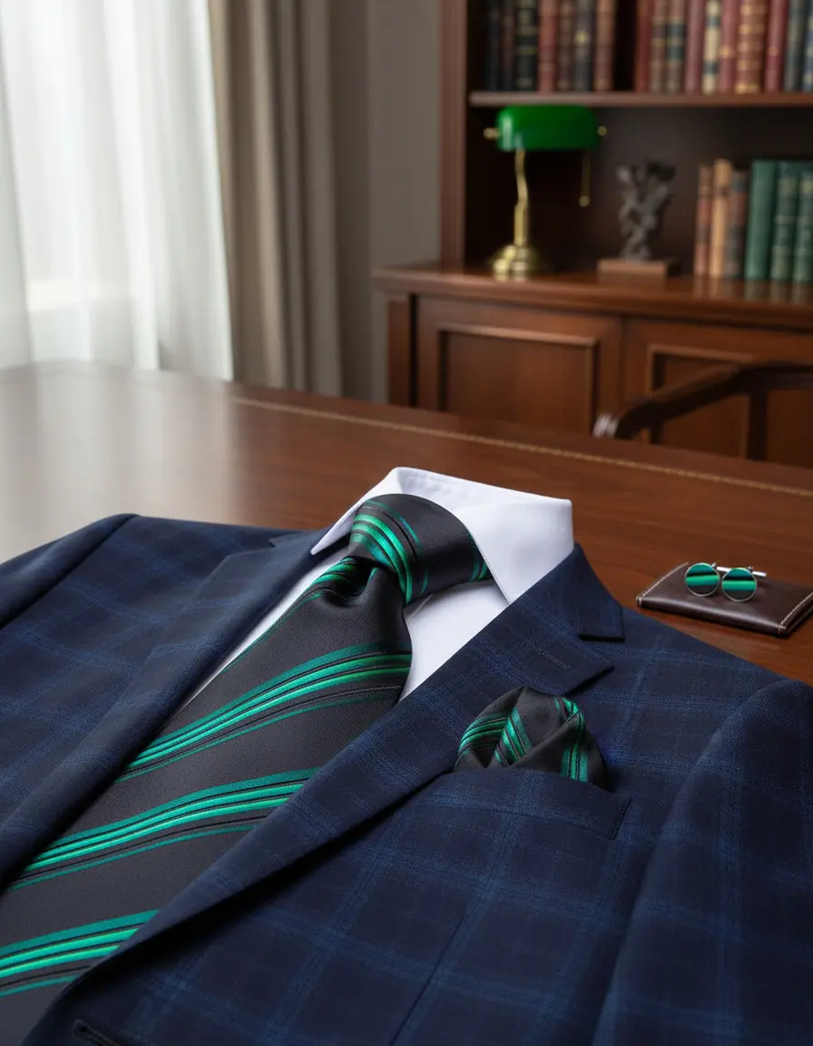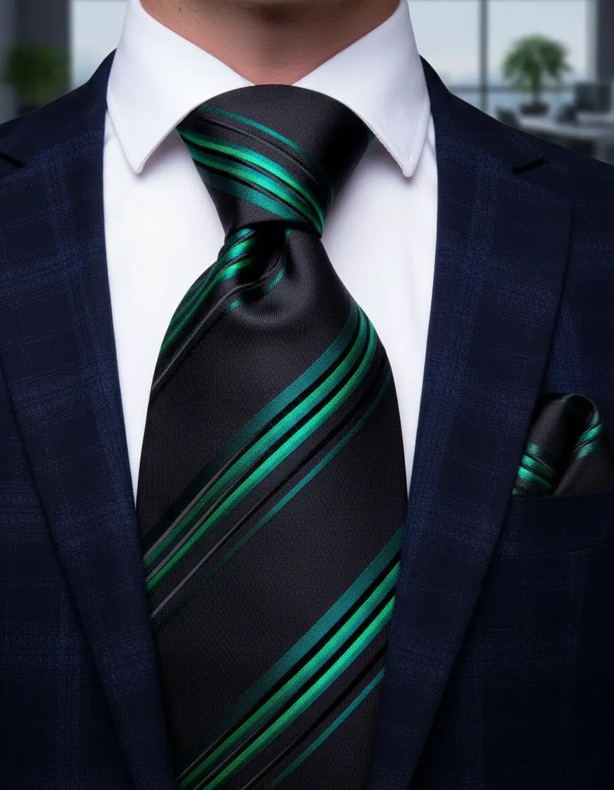 A gravata é acompanhada de um lenço e botões, proporcionando um conjunto harmonioso para o homem moderno. É uma escolha perfeita para padrinhos, noivos, advogados e juízes que desejam se destacar com um visual refinado. O modelo é pensado para aqueles que valorizam a qualidade e o estilo em cada detalhe de sua vestimenta.