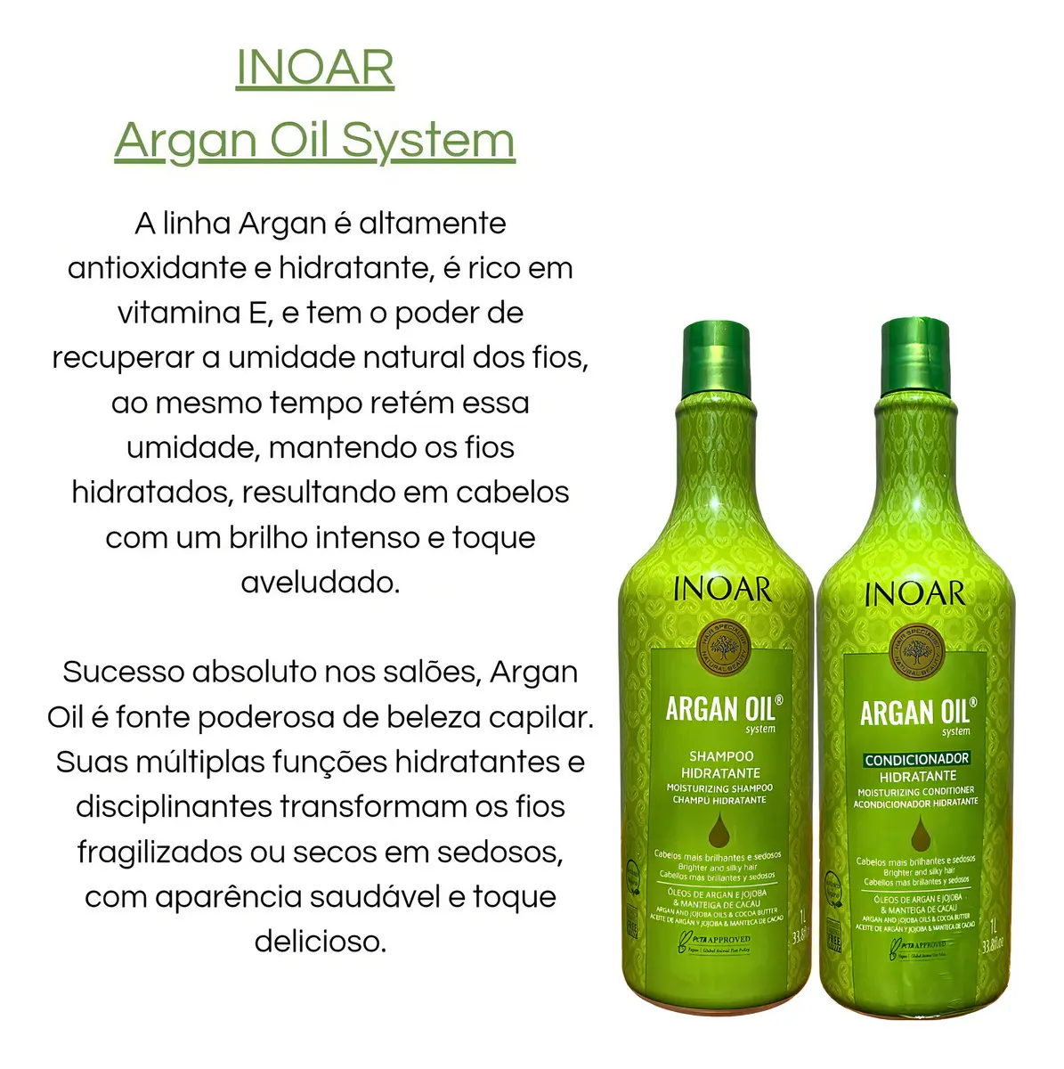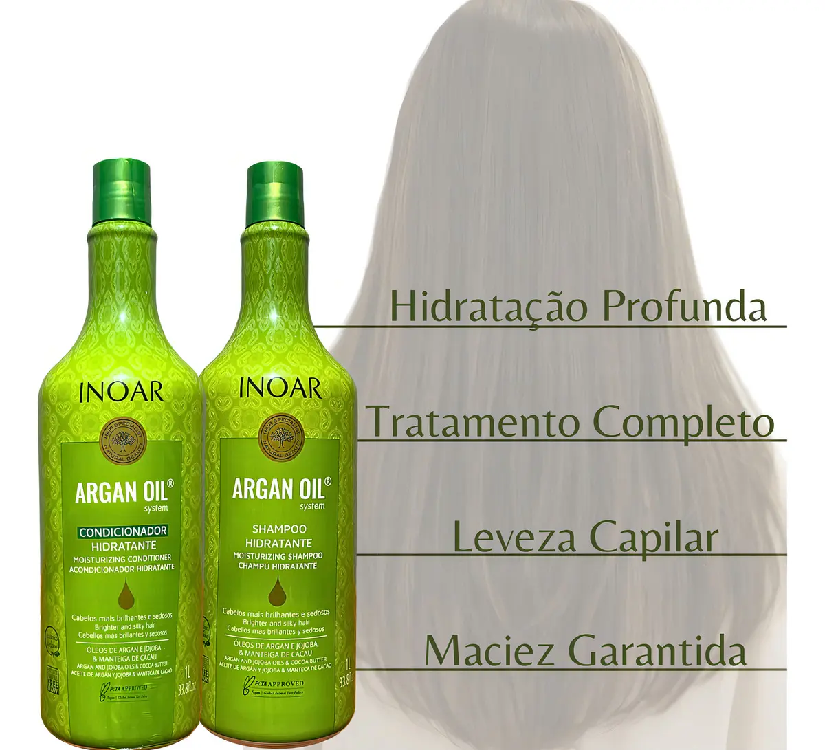 Kit Inoar Shampoo + Condicionador Argan Oil Hidratante 2X1Litro