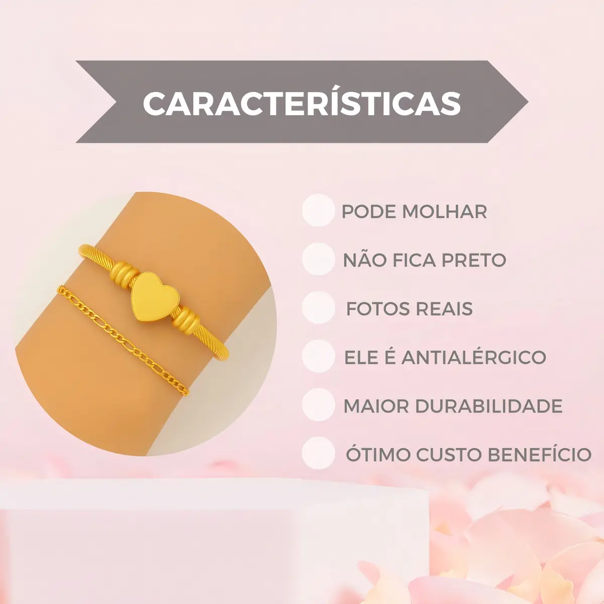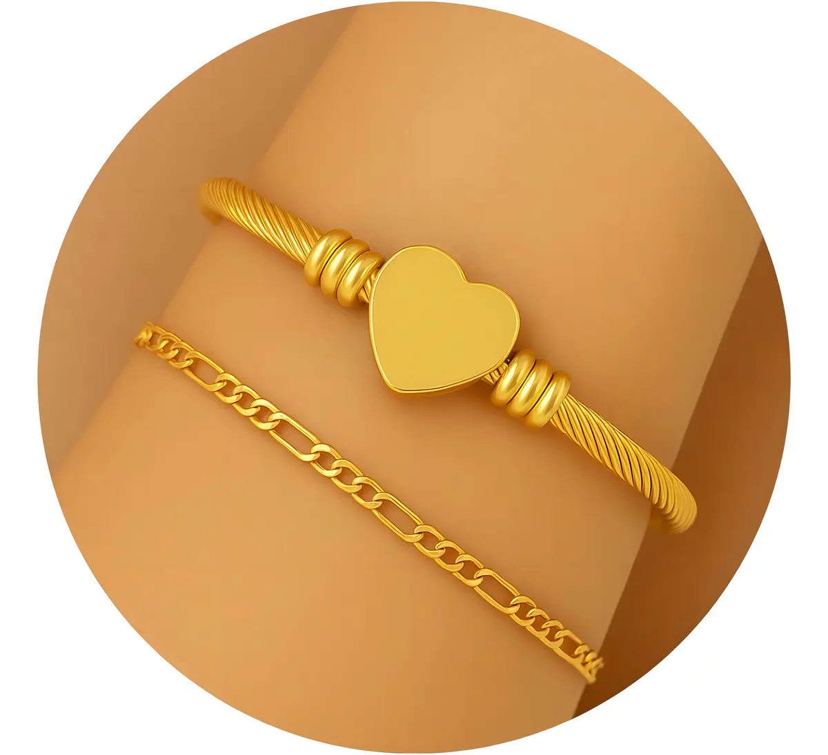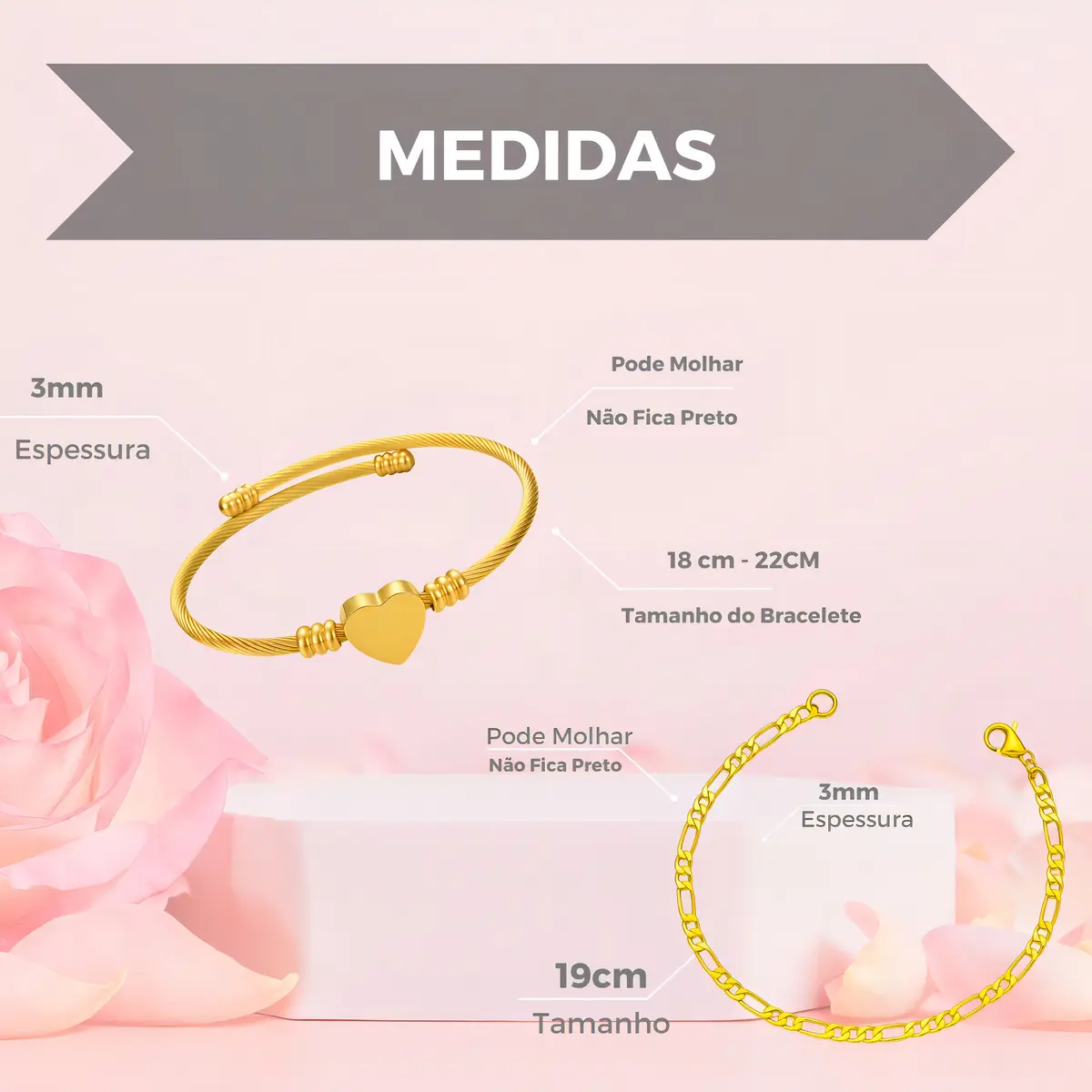– Estilo completo: Esse esse lindo kit pulseira e bracelete coração dourado em aço inox, deixa você com uma aparência bonita e elegante para qualquer ocasião.