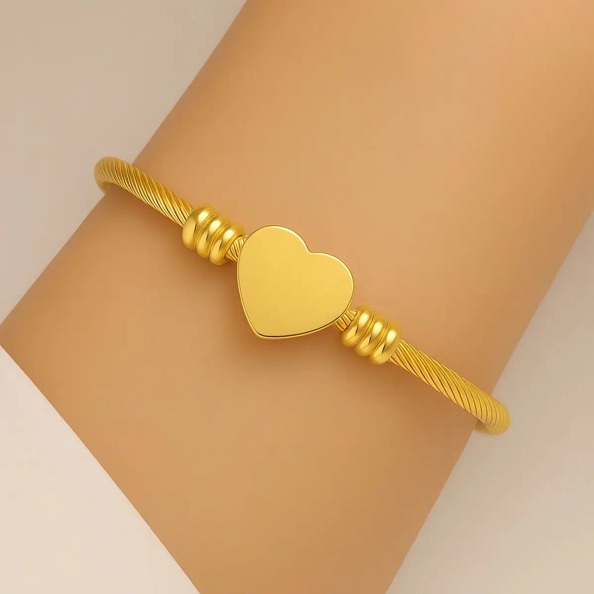 Kit Pulseira Bracelete Coração Dourado Aço Inox.
