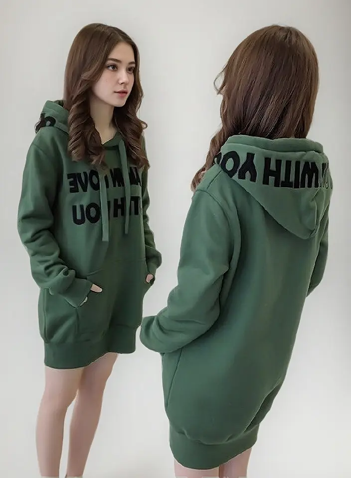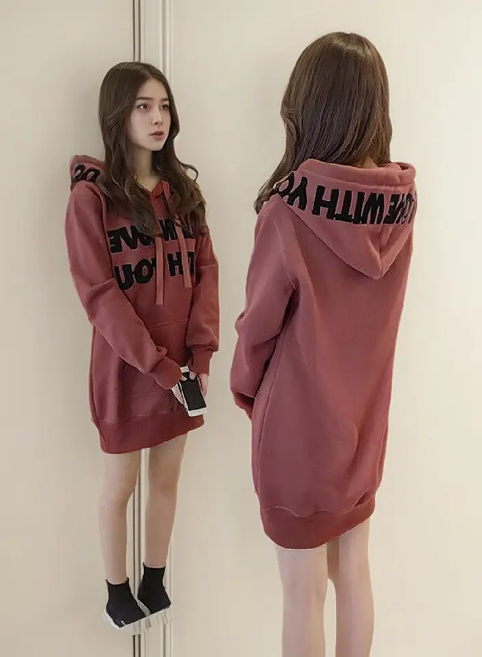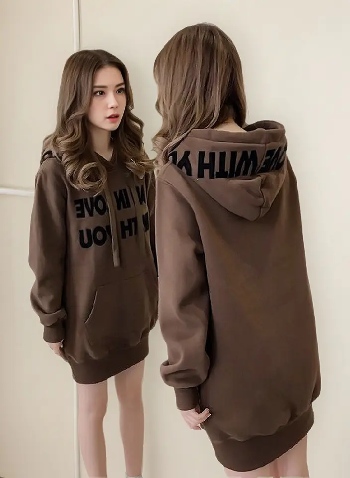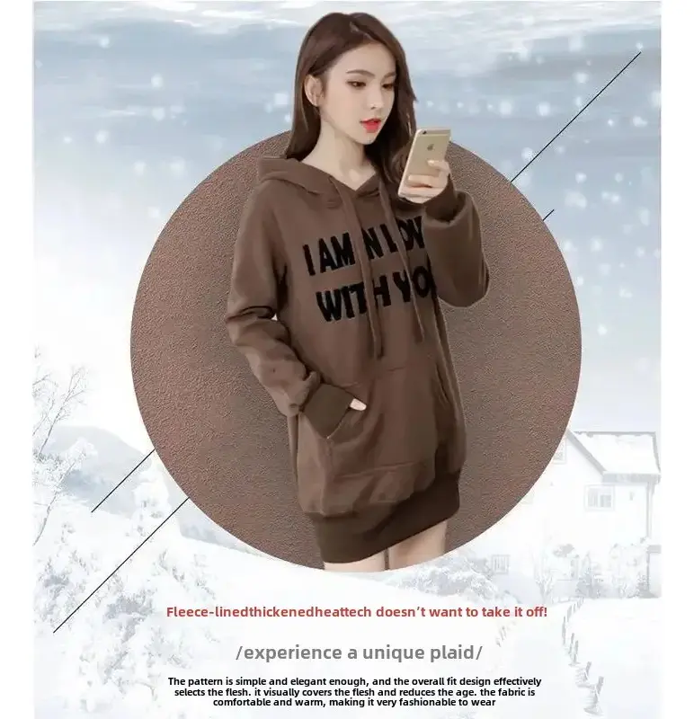 Confortável e estiloso: moletom feminino de comprimento médio com forro de lã de 2023.