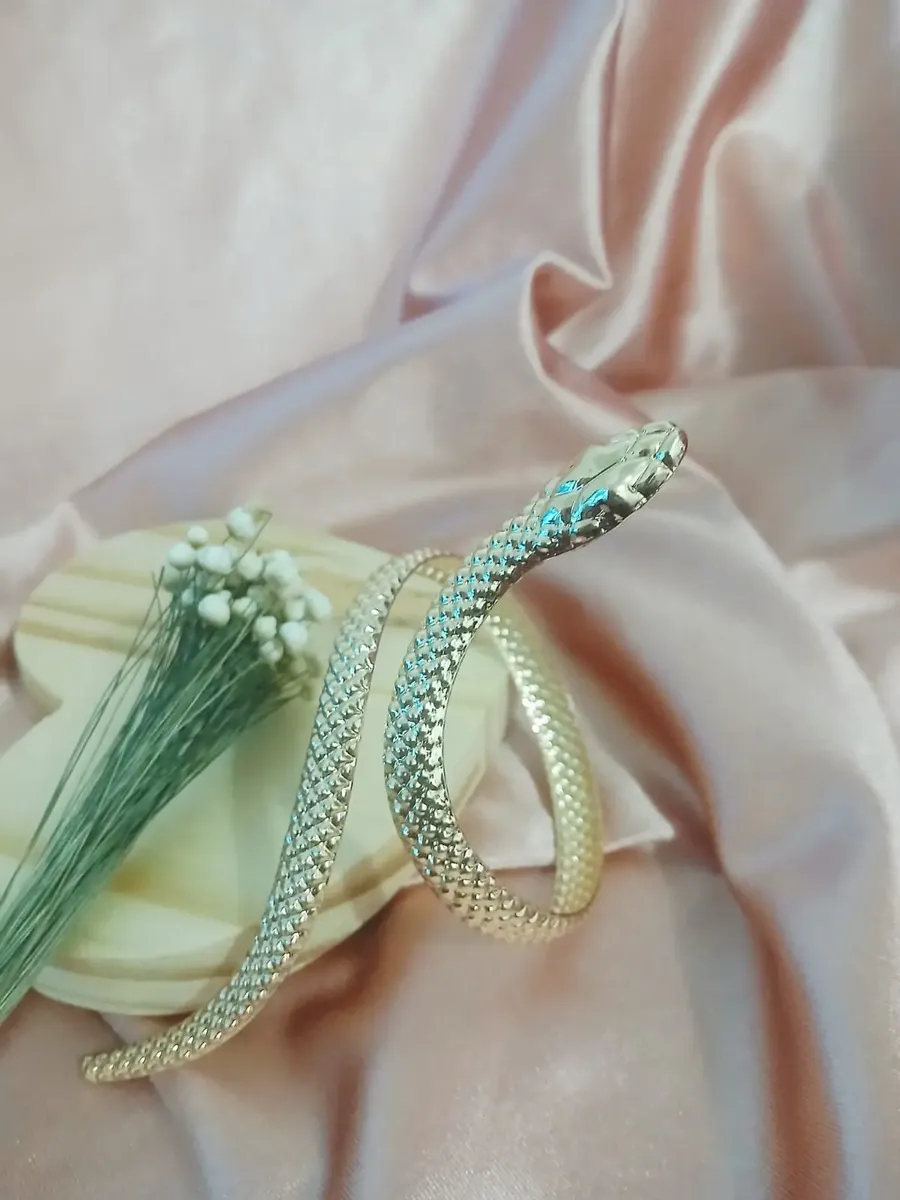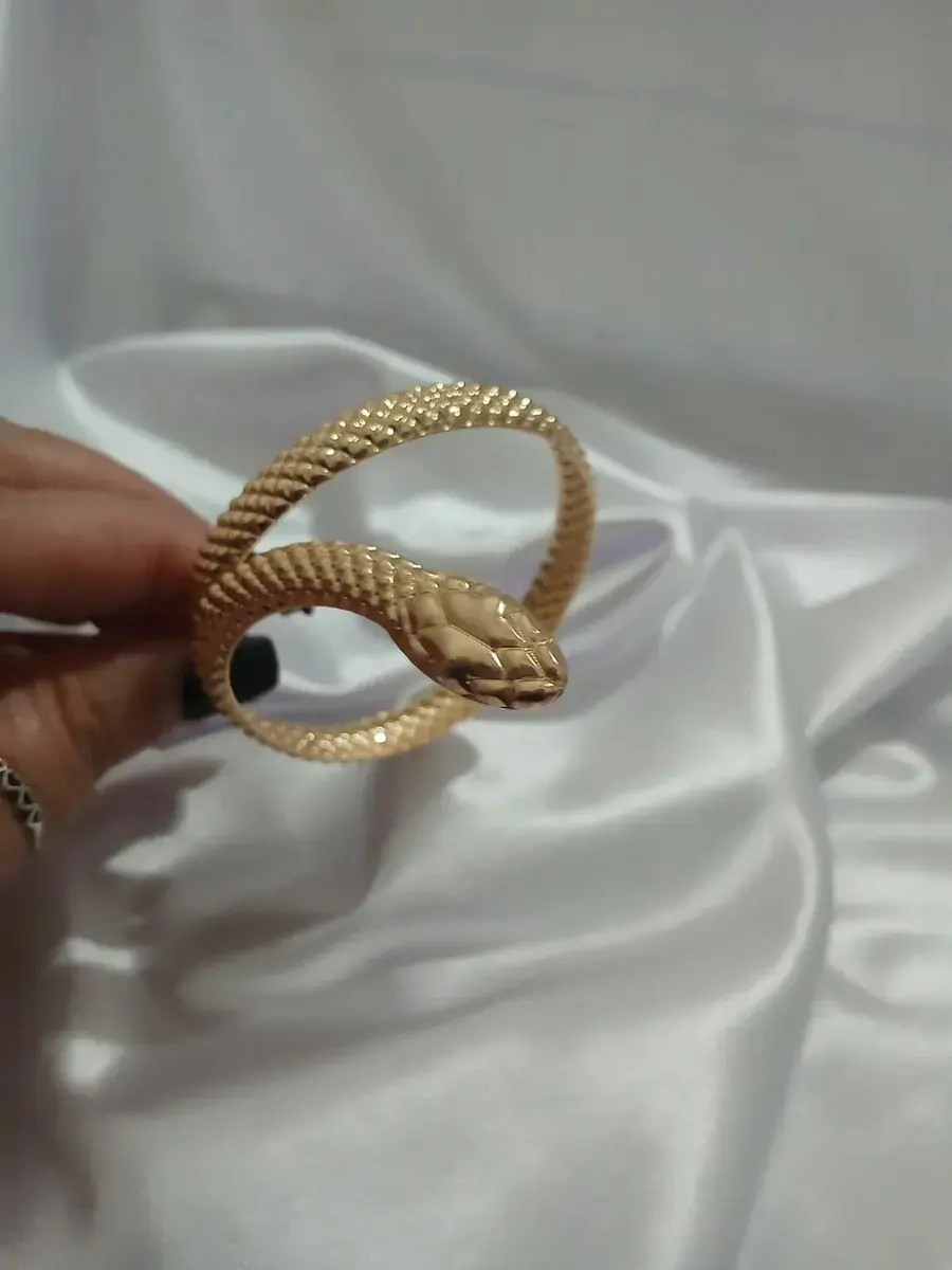 Realce seu visual com este bracelete em formato de cobra, uma peça moderna, ousada e sofisticada. Produzida em metal de alta qualidade e folheada a ouro, essa pulseira combina resistência e brilho duradouro.