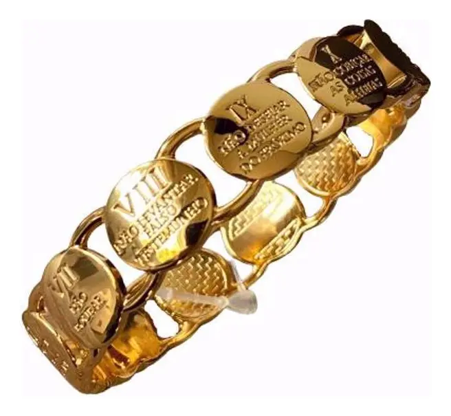 Pulseira Feminina Bracelete Religioso 10 Mandamentos Semijoia Folheada A Ouro embalada para presente chapeada banhada