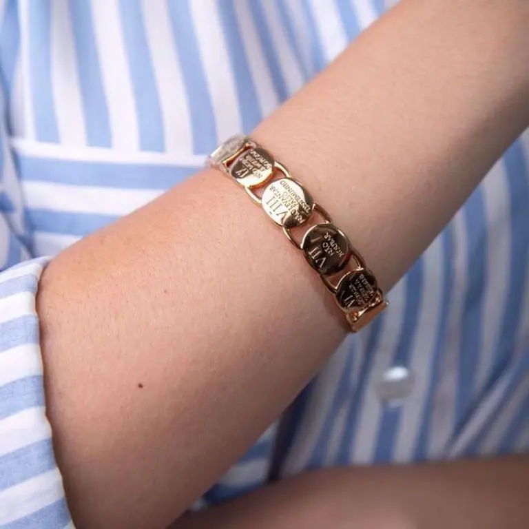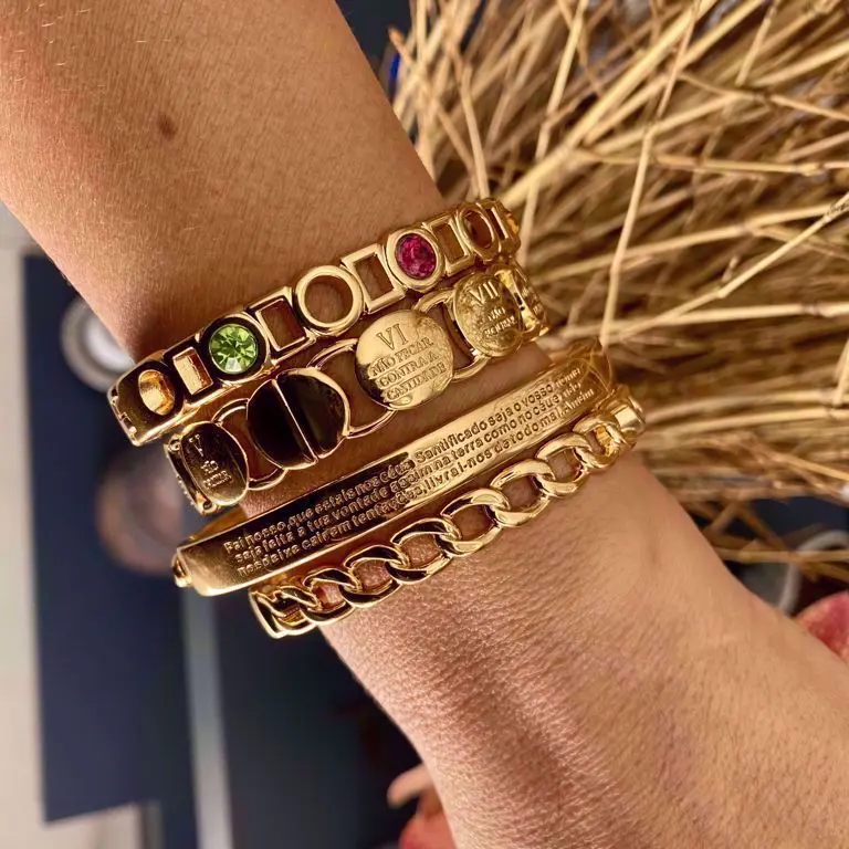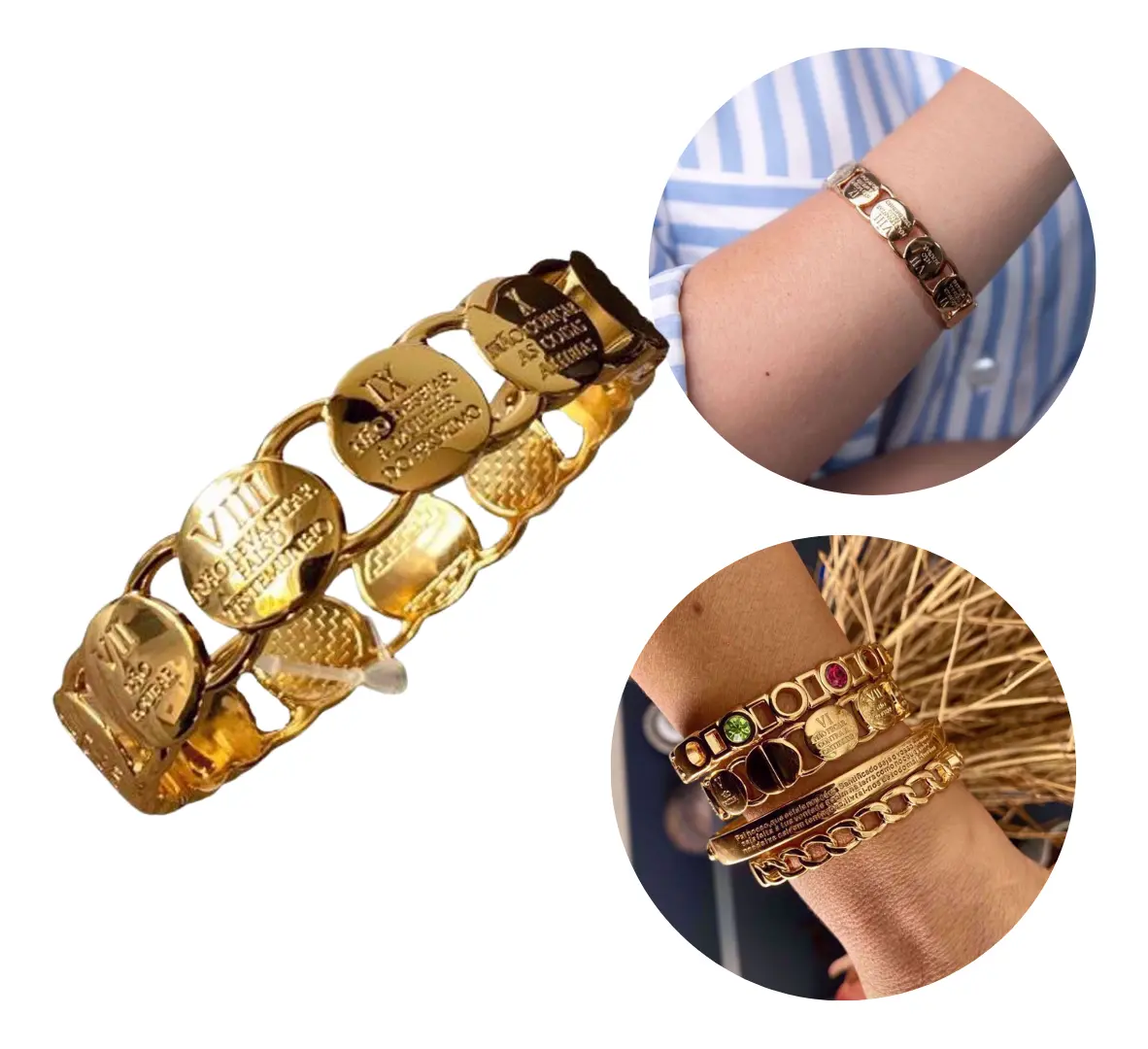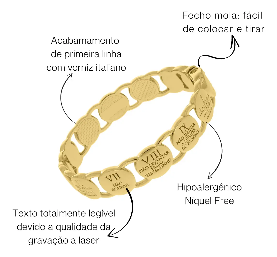 A Pulseira Bracelete Feminino 10 Mandamentos Dourada é perfeita para mulheres que buscam um acessório que una estilo e significado.