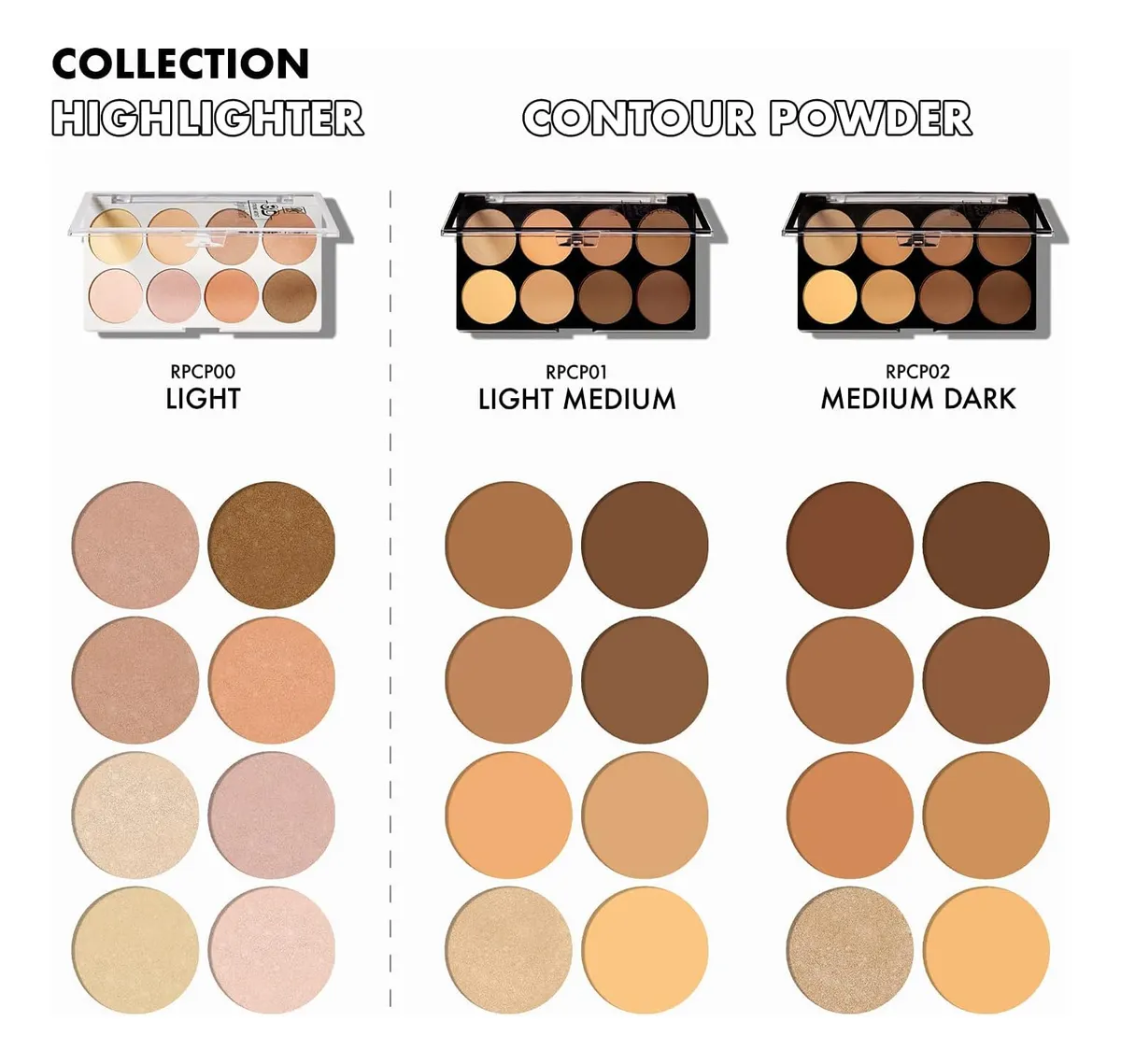 • Com 8 tonalidades diferentes para escolher, esta paleta múltipla possui tonalidades para contorno e realce, permitindo definir as maçãs do rosto, aperfeiçoar o nariz e esculpir a linha do queixo.
