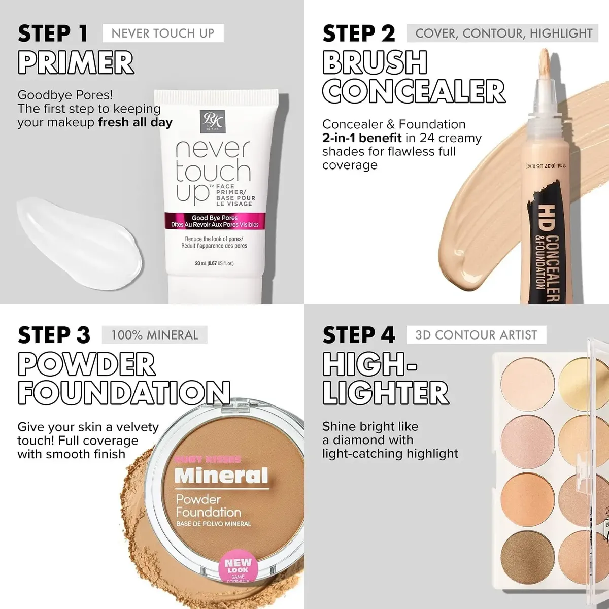 • O Pó Contorno 3D Ruby Kisses é indispensável para qualquer amante de maquiagem que queira contornar e realçar suas melhores características faciais.