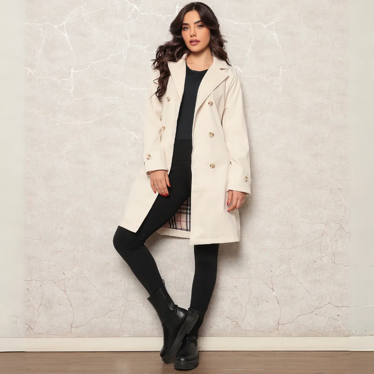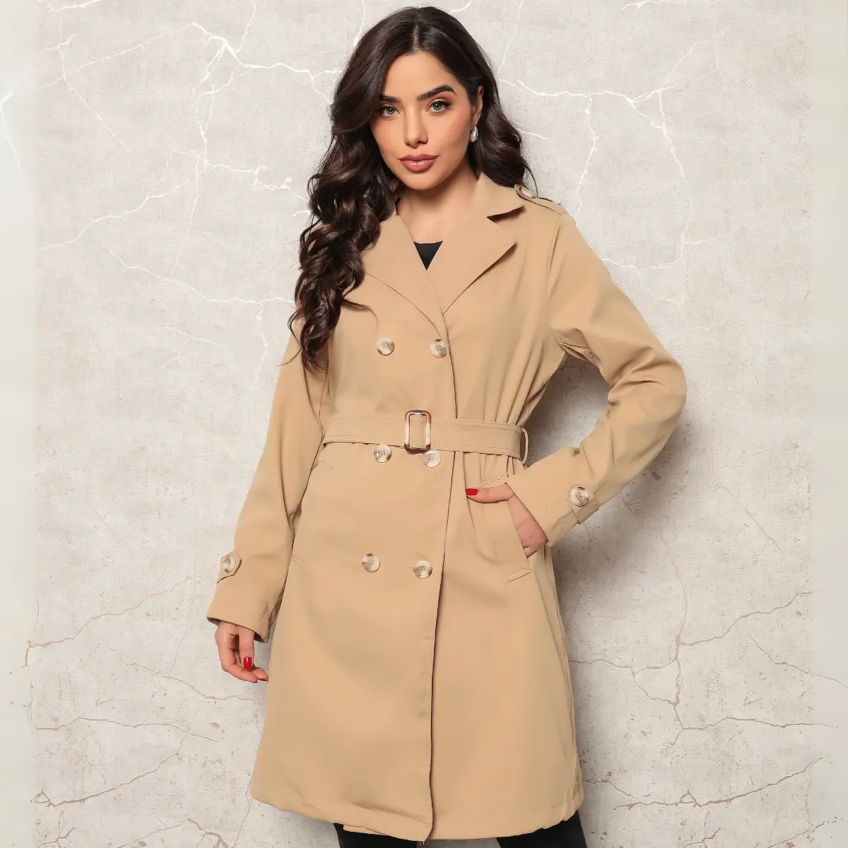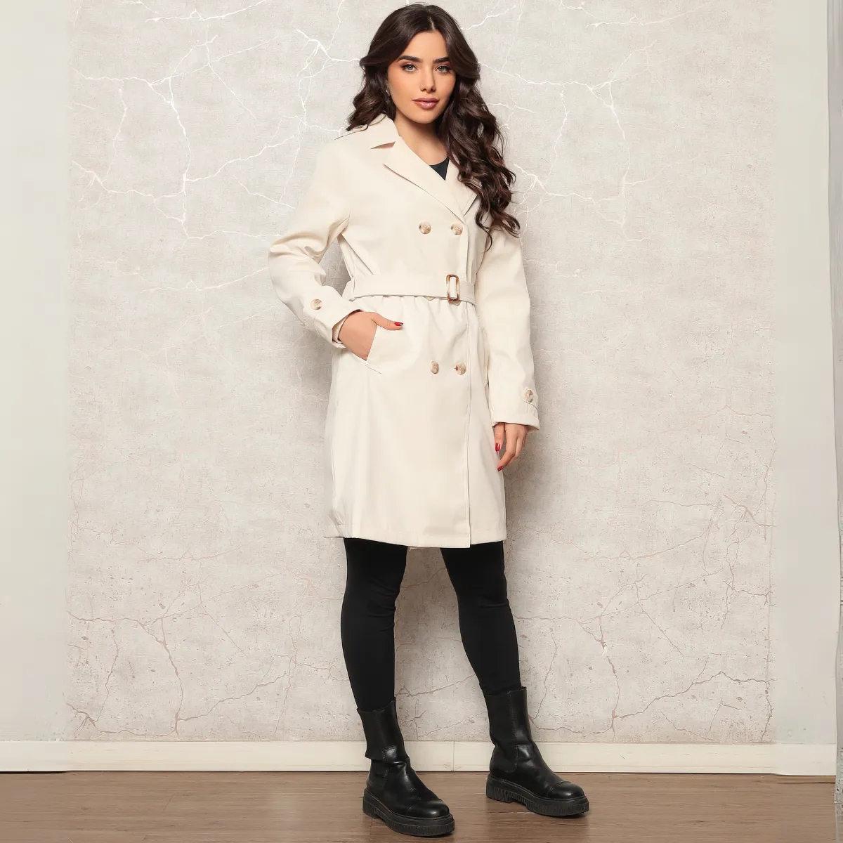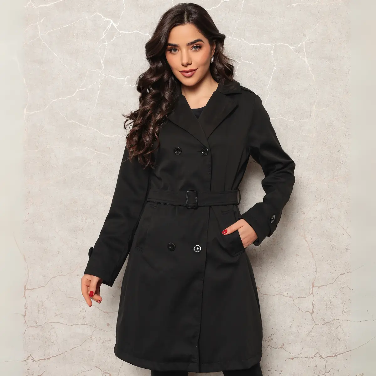 Este casaco feminino une elegância clássica e praticidade moderna em uma peça versátil e atemporal. Com corte reto e caimento estruturado, o modelo conta com fechamento transpassado por botões duplos e acompanha cinto com fivela ajustável que valoriza a silhueta com sofisticação. A gola ampla com lapela adiciona um toque refinado ao visual, enquanto os punhos ajustáveis garantem um encaixe mais firme nos dias frios.