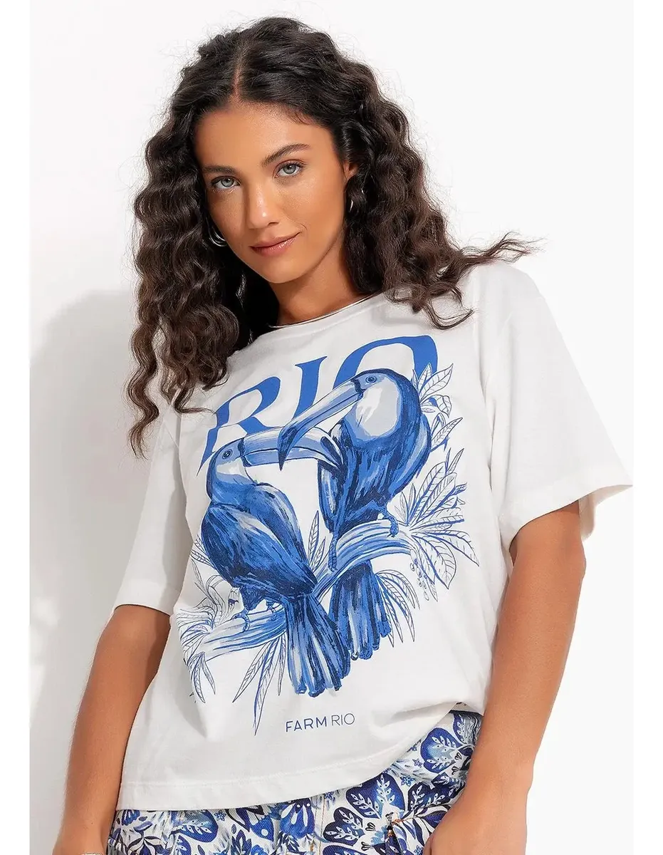 T-shirt Média Rio Tucanos Bege Farm Rio – Oficial