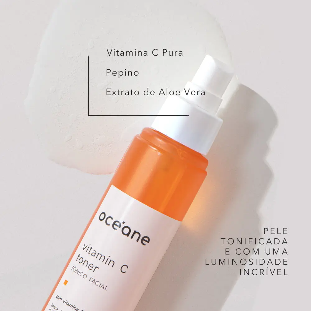 O Vitamin C Toner potencializa a limpeza da pele, desobstruindo os poros e deixando sua pele preparada para absorver os cosméticos com mais eficiência. Este produto conta com vitamina C, extrato de Aloe Vera e pepino em sua fórmula, que juntos, possuem ação calmante e revigorante.