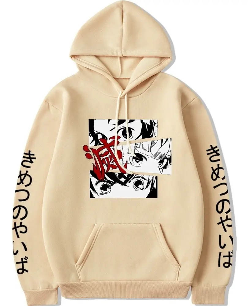 O moletom Demon Slayer é feito de poliéster de alta qualidade, leve e moderno, confortável e durável, adota um tecido premium de poliéster e algodão com um toque macio e suave ao toque, é respirável e totalmente adequado para a pele e oferece conforto durante todo o dia.
